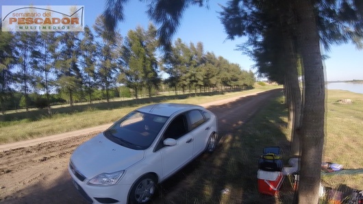 Paramos con Luis bajo una hilera de pinos a la vera del camino dejando el auto a la sombra y armamos un improvisado campamento al reparo del sol, nos dispusimos al armado de dos equipos cada uno y al encarne con masa, maíz fermentado, salamín, lombrices y un equipo especialmente con anguila.